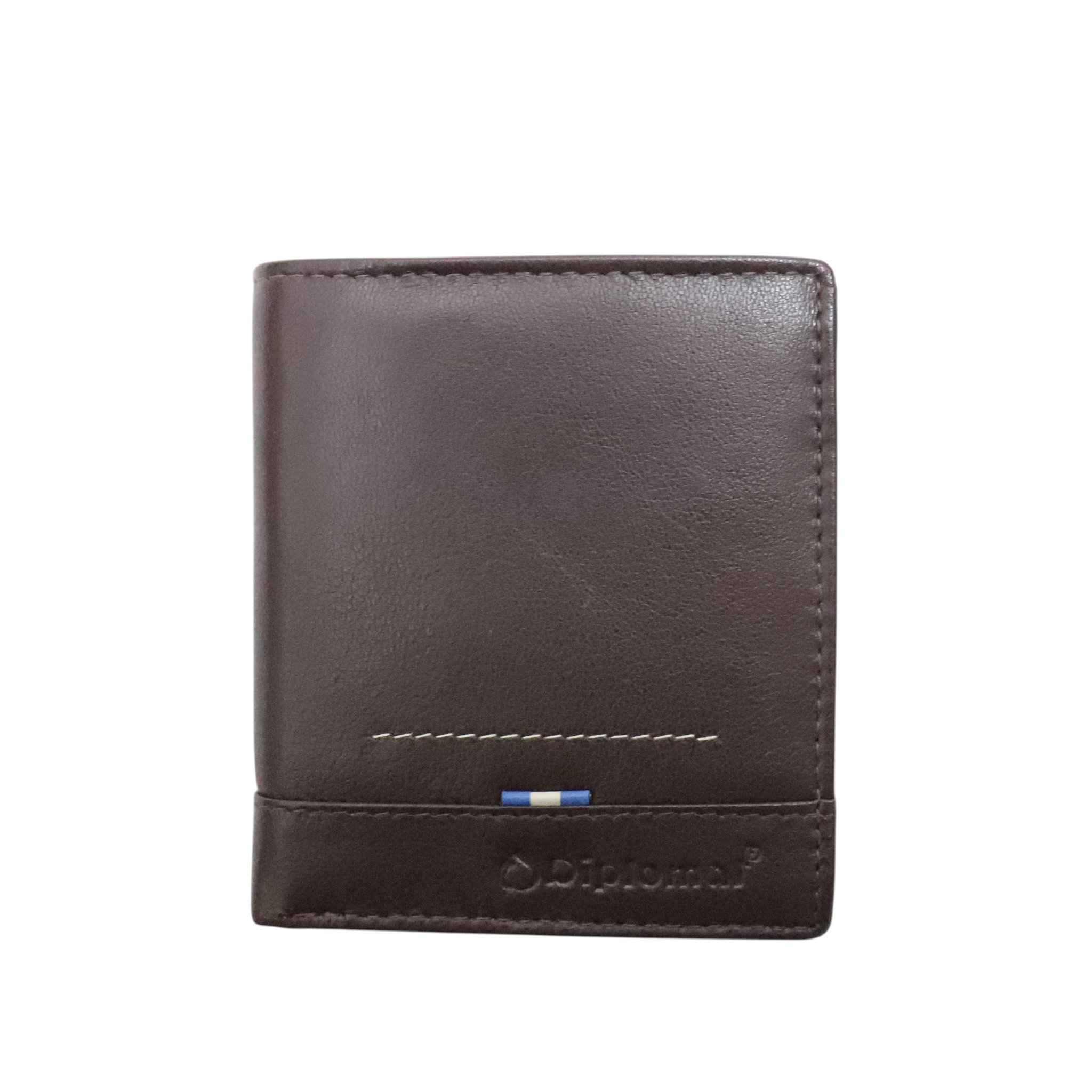 Μικρό δερμάτινο πορτοφόλι Diplomat. Διαθέτει 2 θέσεις για χαρτονομίσματα, τσέπη με καπάκι για κέρματα και 10 θέσεις για κάρτες. Διαθέτει επίσης αντικλεπτική προστασία RFID. Θα το παραλάβετε με το κουτί του.