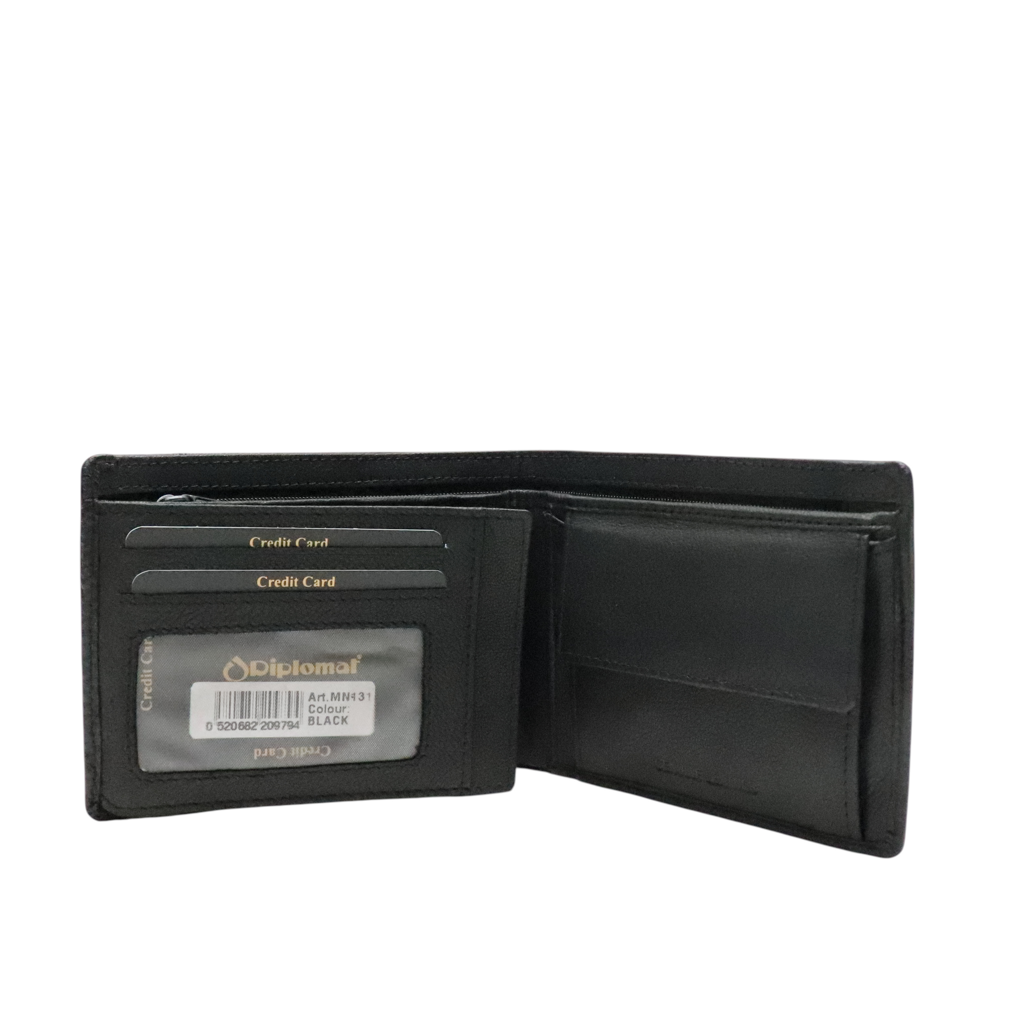 Δερμάτινο πορτοφόλι Diplomat. Διαθέτει 2 θέσεις για χαρτονομίσματα +1 με φερμουάρ, τσέπη με καπάκι για κέρματα, θέση για ταυτότητα παλαιού τύπου και 9 θέσεις για κάρτες. Διαθέτει αντικλεπτική προστασία RFID. Θα το παραλάβετε με το κουτί του.