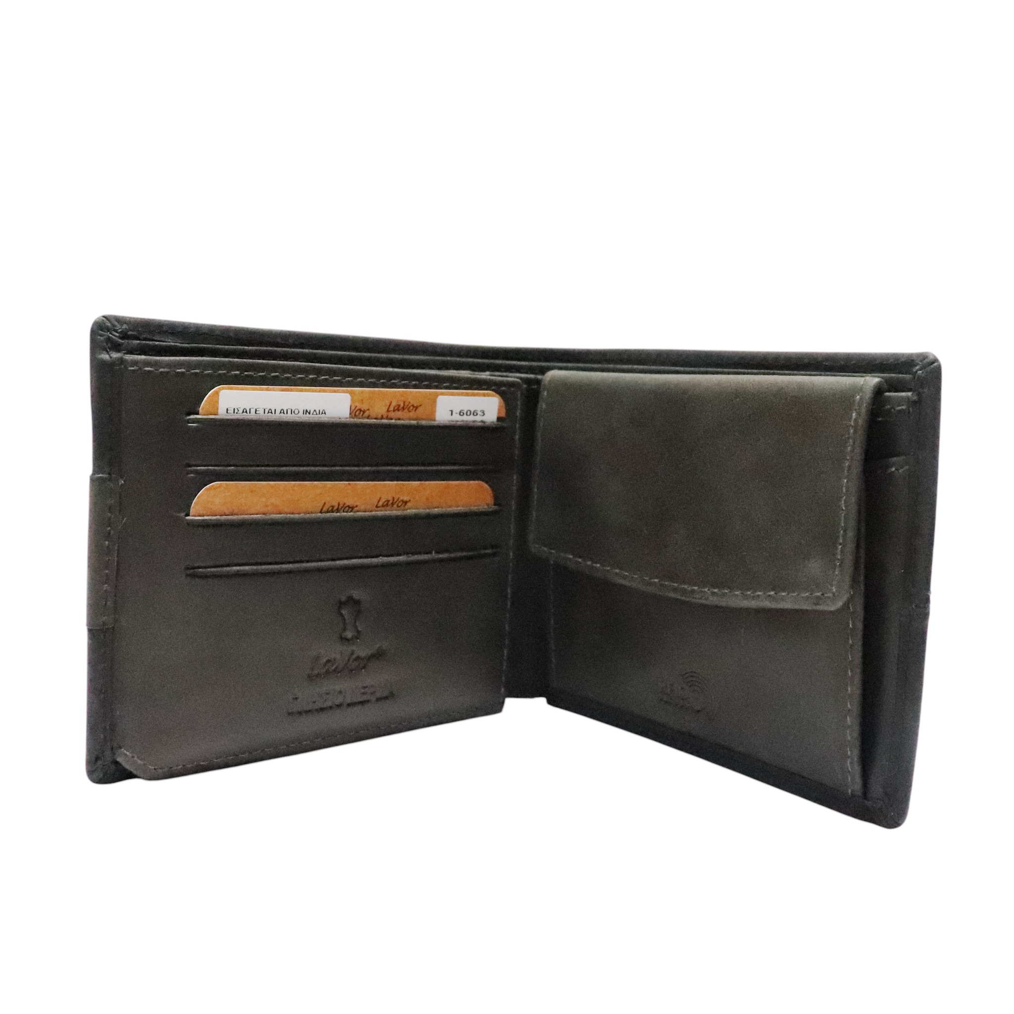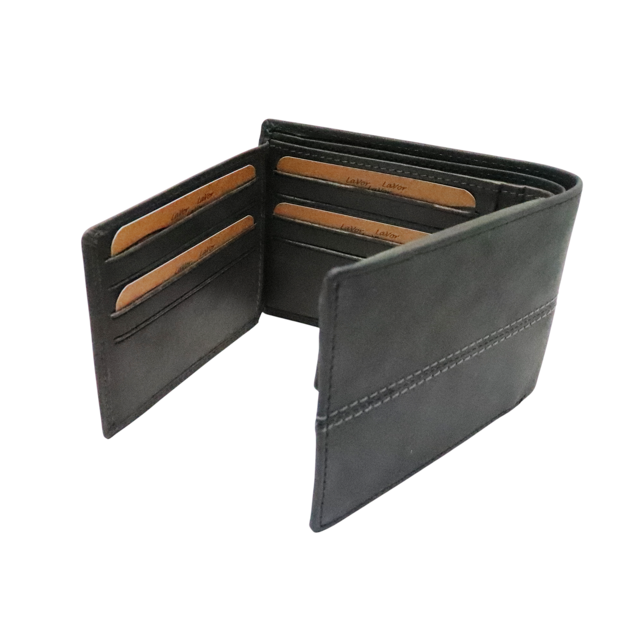 Δερμάτινο πορτοφόλι LaVor. Διαθέτει 2 χώρους για χαρτονομίσματα, τσέπη με καπάκι για κέρματα, θέση για ταυτότητα παλαιού τύπου και 14 θέσεις για κάρτες. Διαθέτει αντικλεπτική προστασία RFID. Θα το παραλάβετε με το κουτί του.