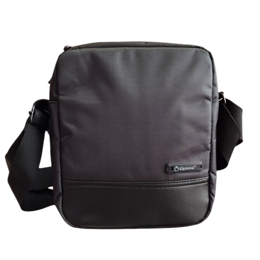 Χιαστί τσαντάκι Diplomat με φάσα δερματίνη στο κάτω μέρος. Διαθέτει εσωτερικά 2 ανοιχτές θήκες. Εξωτερικά υπάρχει 1 τσέπη με φερμουάρ στο πίσω μέρος.