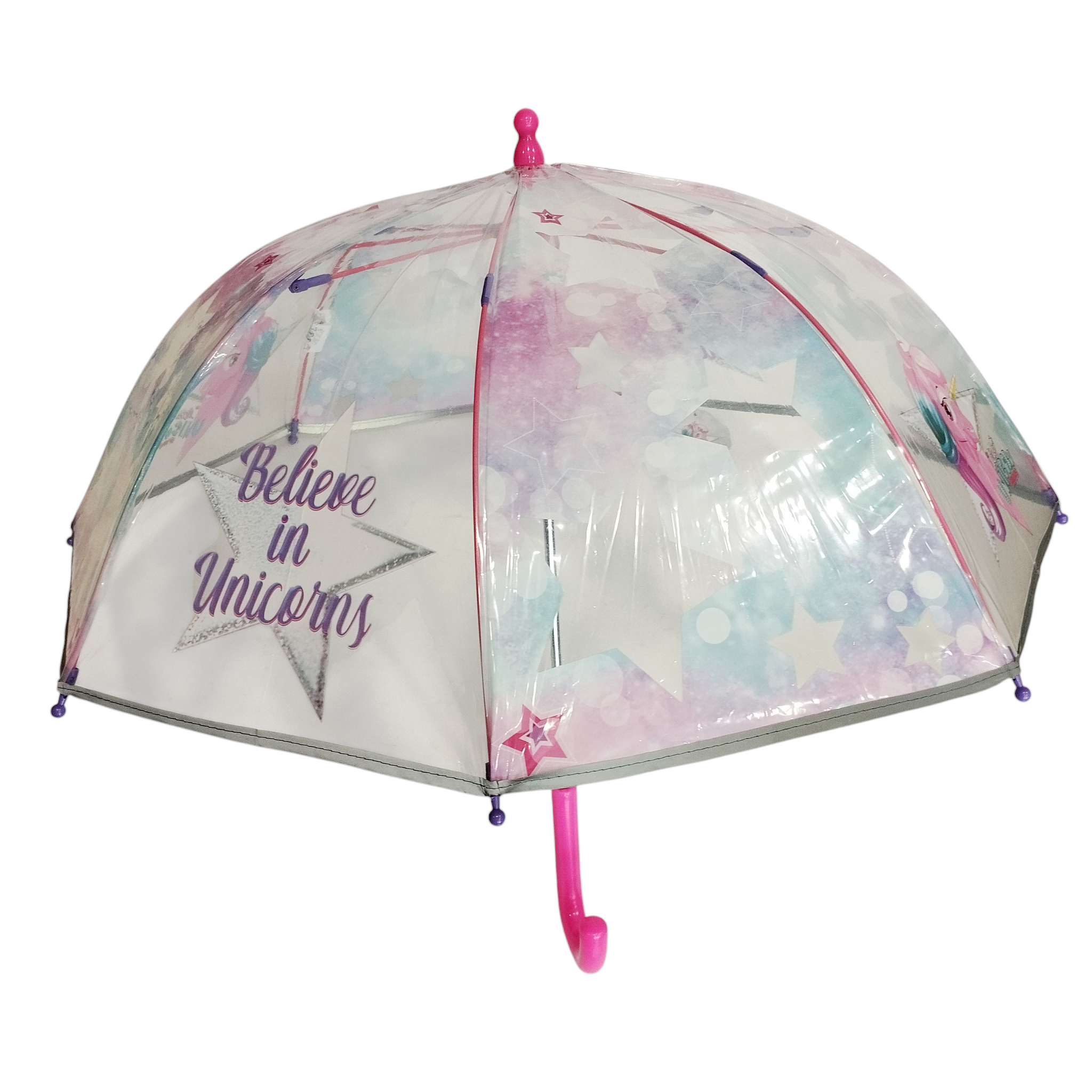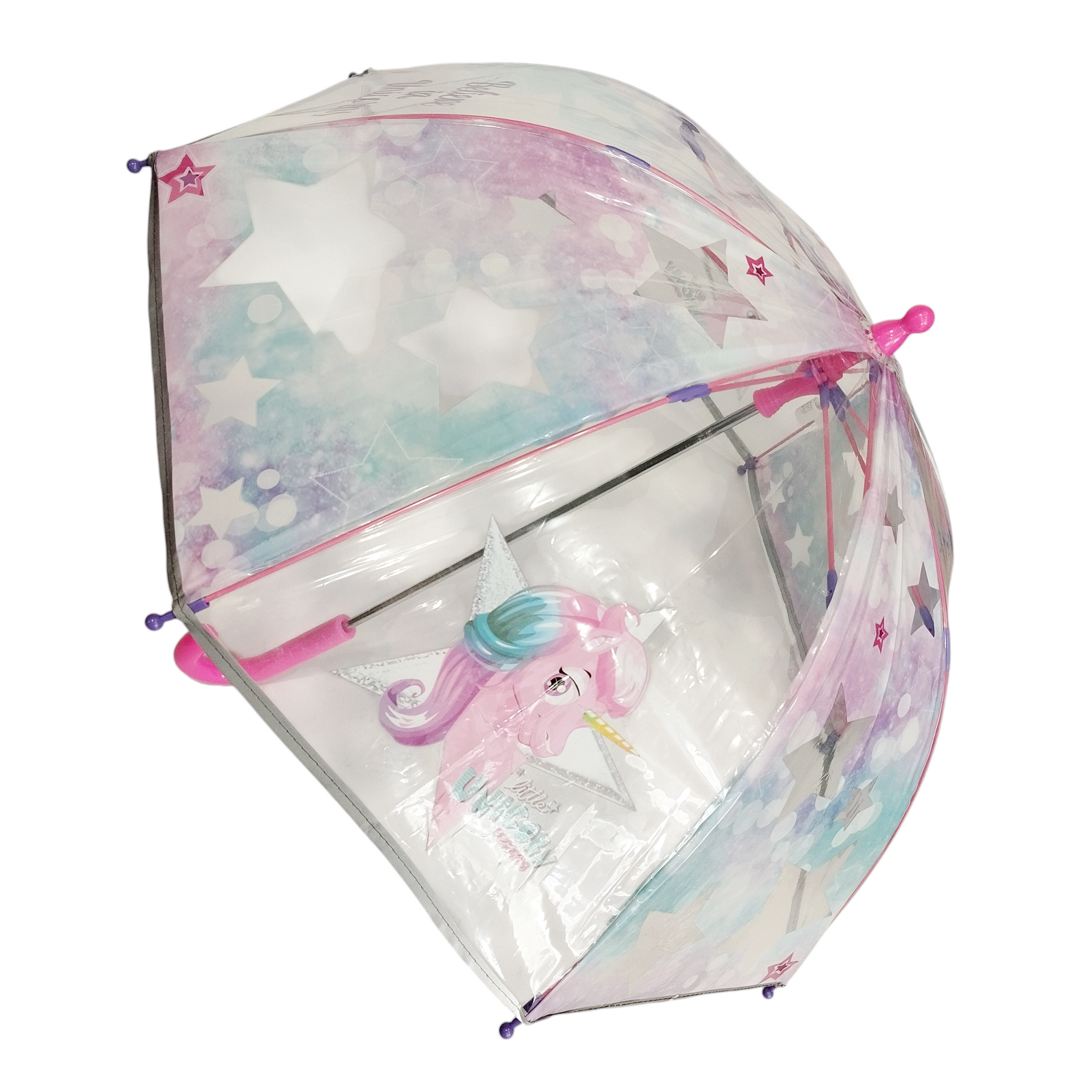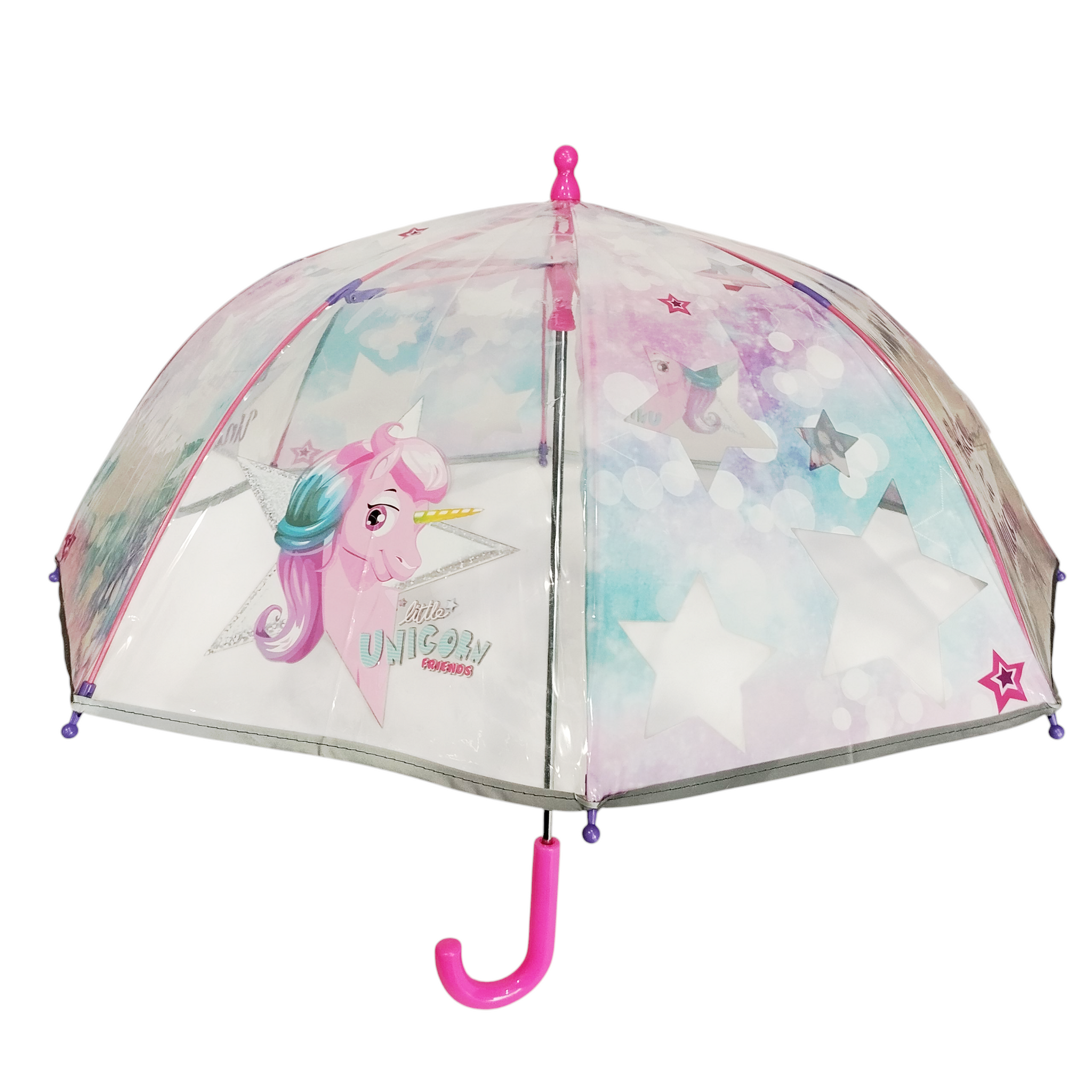 Μικρή ομπρέλα Perletti little unicorn. Χειροκίνητη με άνοιγμα ασφαλείας, καμπάνα POE, αντιανεμική με σκελετό fiberglass και ρέλι γύρω γύρω που αντανακλάει το φως των αυτοκινήτων. 8 ακτίνες, μήκος ακτίνας 42εκ.