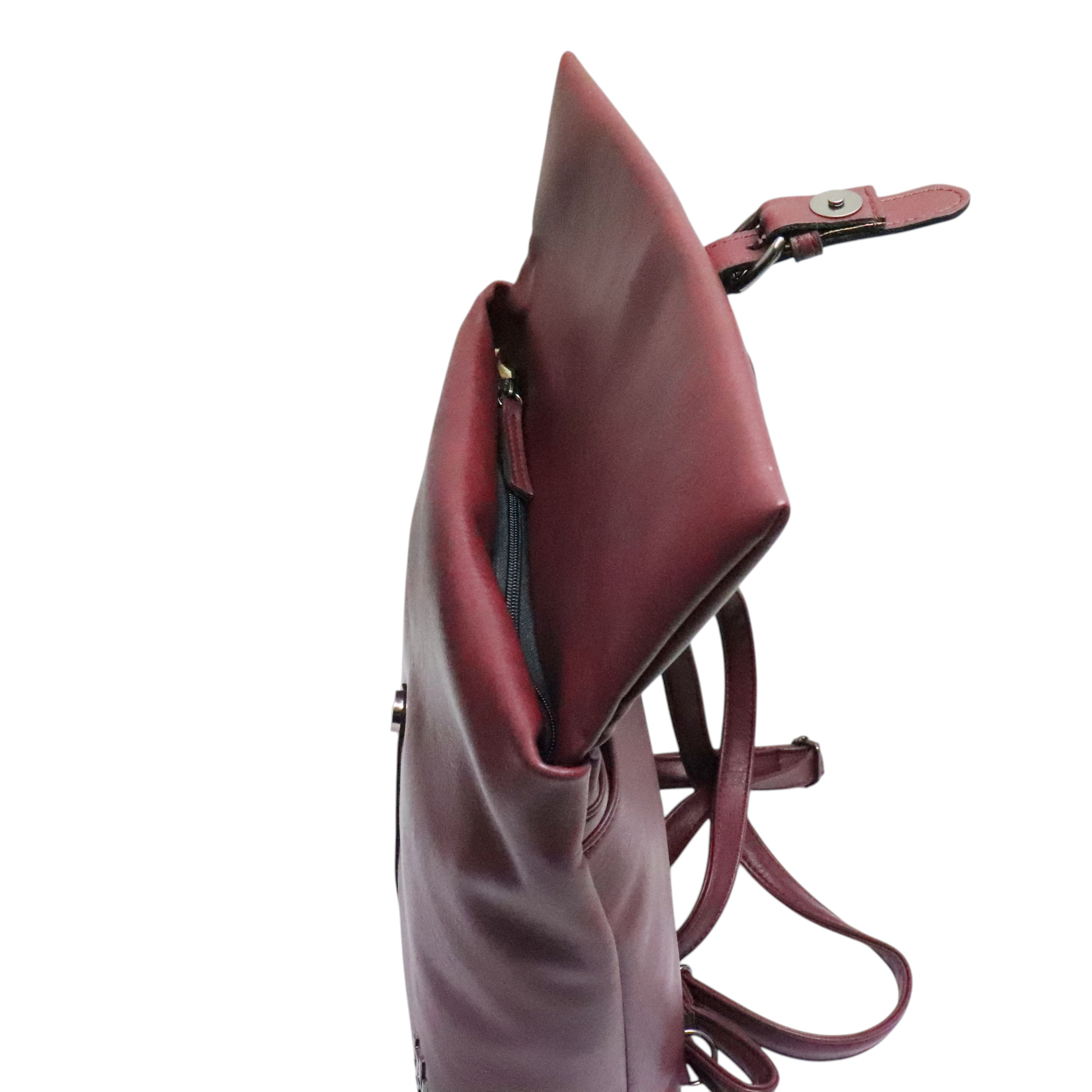 Τσάντα πλάτης ελληνικής κατασκευής HUNTER. Κλείνει με φερμουάρ και καπάκι με μαγνητικό κούμπωμα. Διαθέτει εσωτερικά 1 τσέπη με φερμουάρ και 1 ανοιχτή θήκη. Εξωτερικά υπάρχει 1 θήκη με μαγνητικό κούμπωμα στο πίσω μέρος.