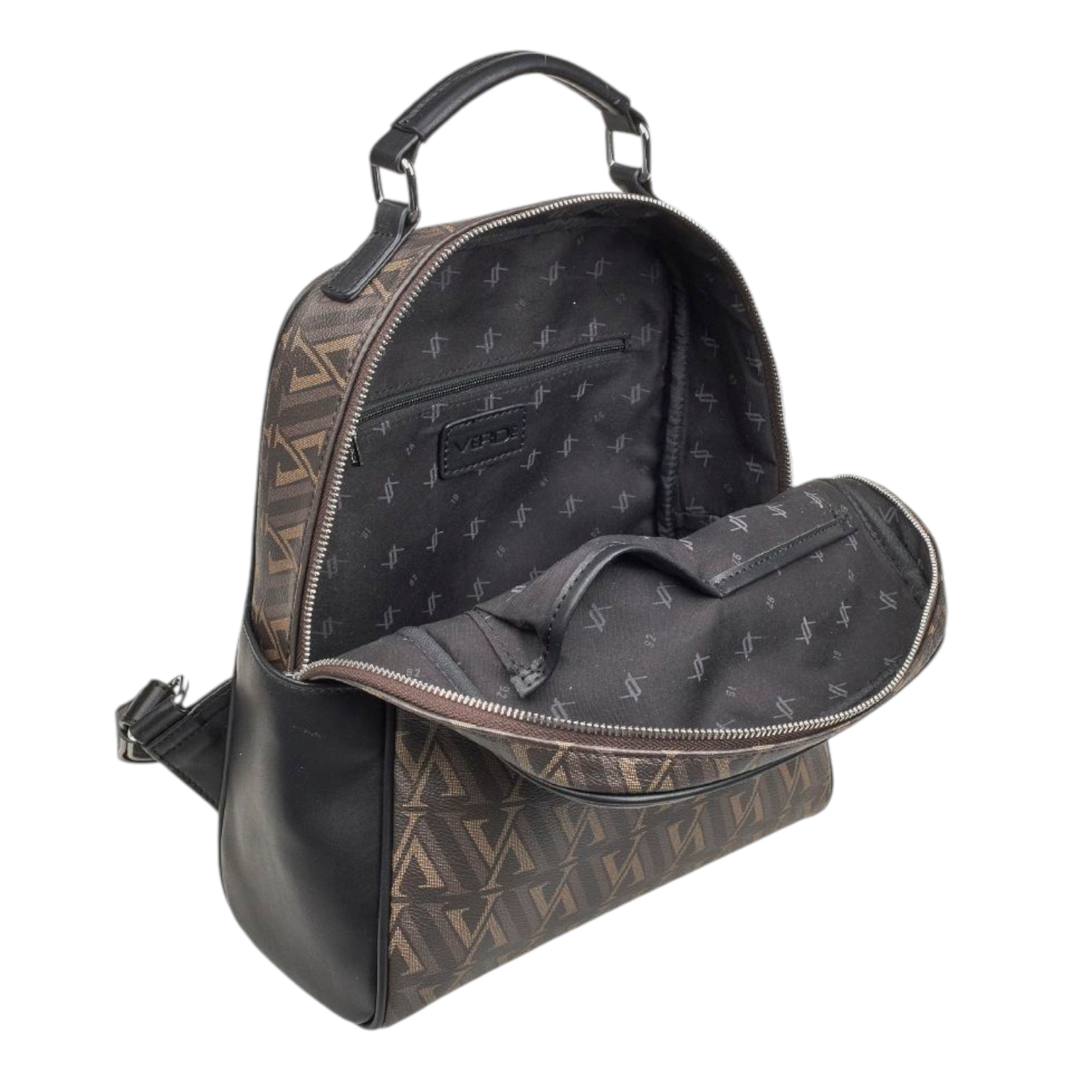 Τσάντα πλάτης με τύπωμα Verde 16-8076. Διαθέτει εσωτερικά 1 τσέπη με φερμουάρ, και 2 ανοιχτές θήκες. Εξωτερικά υπάρχουν 1 τσέπη με φερμουάρ στο πίσω μέρος και 2 ανοιχτές θήκες στα πλάγια.