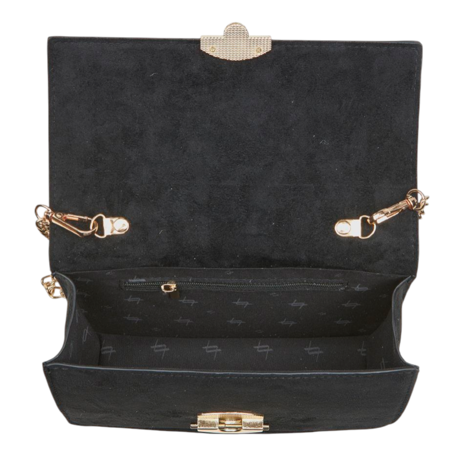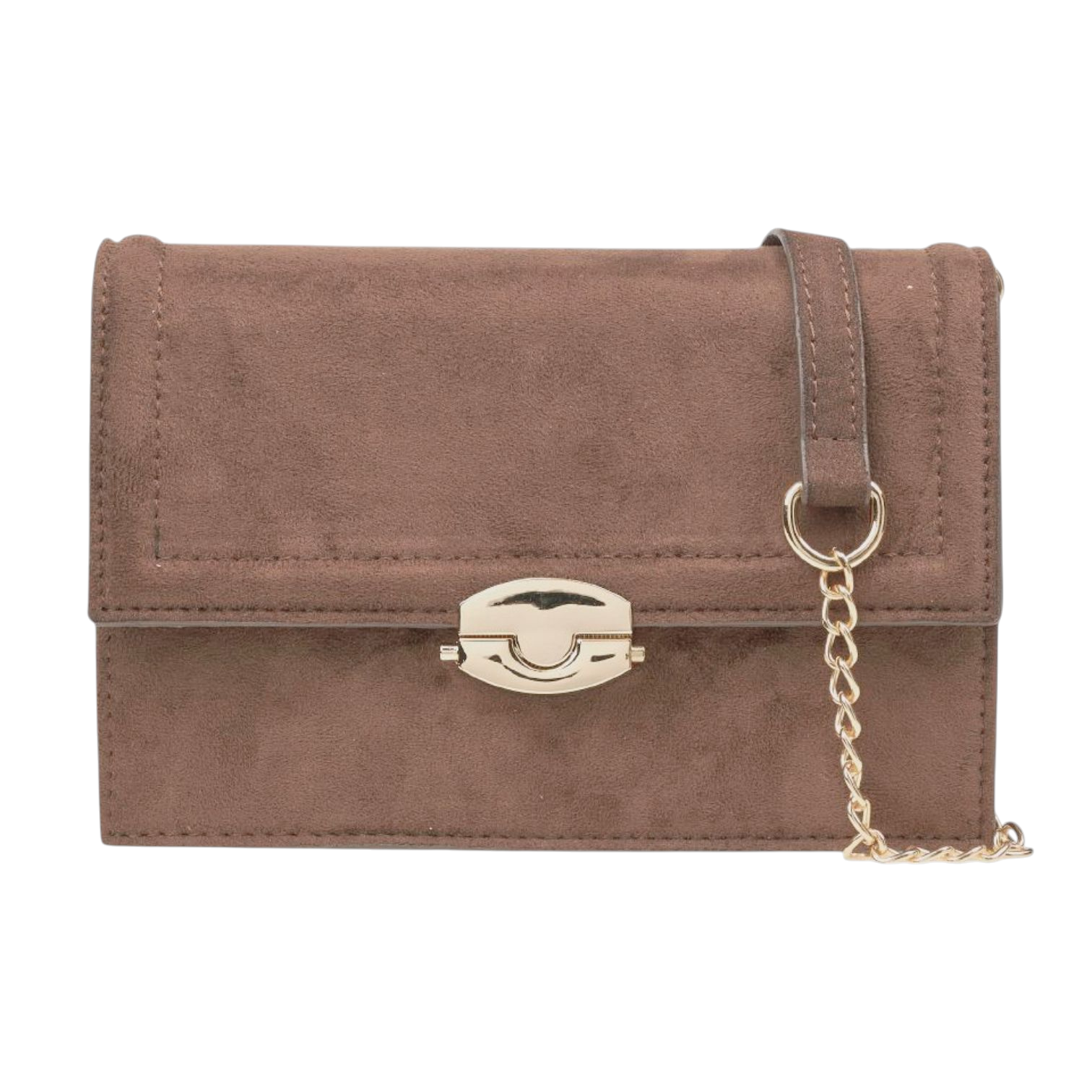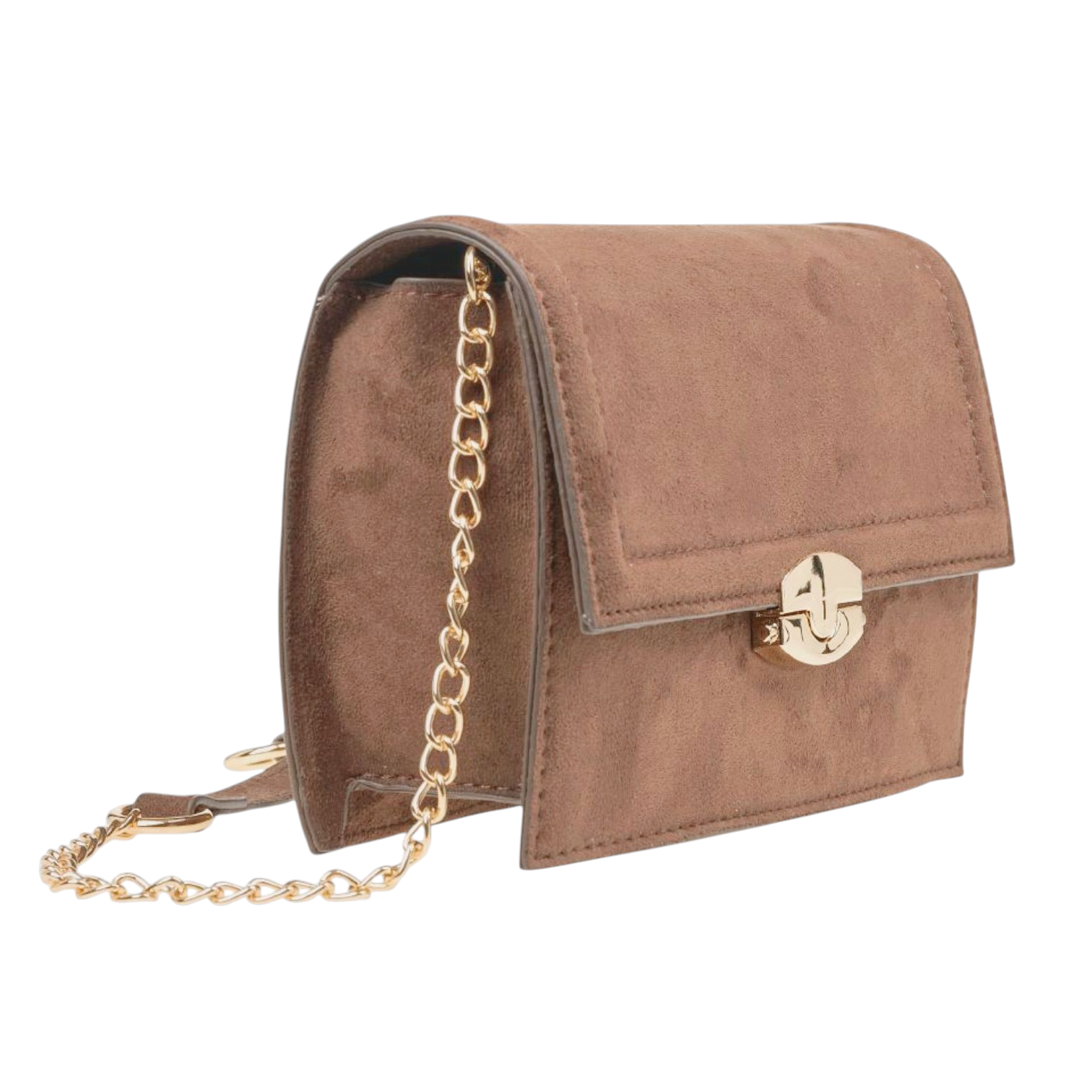 Τσαντάκι σουέτ Verde 01-2028. Κλείνει με καπάκι και μεταλλικό κούμπωμα. Διαθέτει εσωτερικά 1 τσέπη με φερμουάρ.