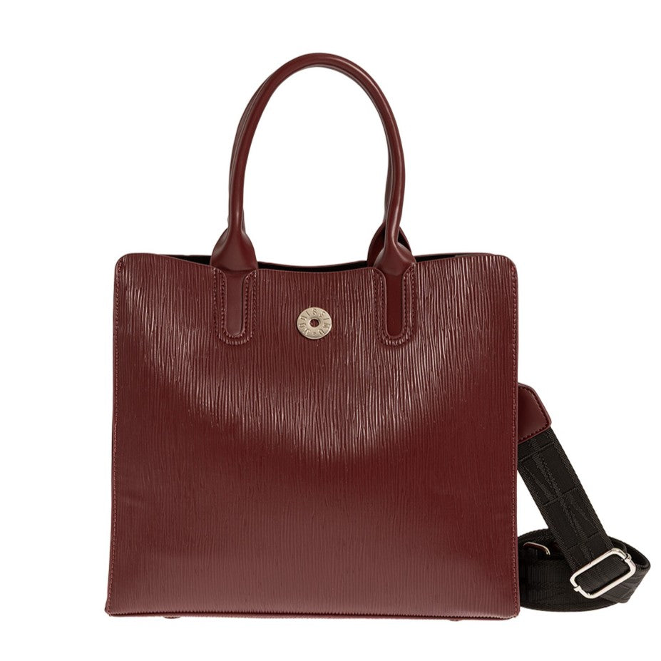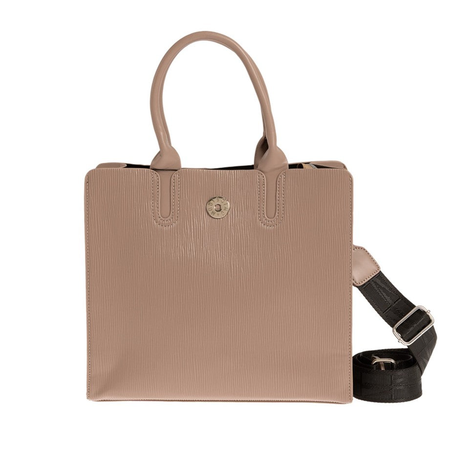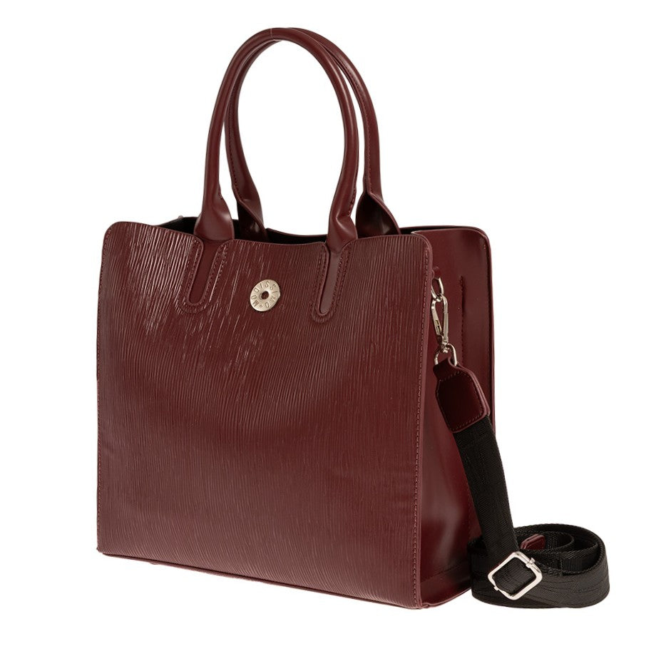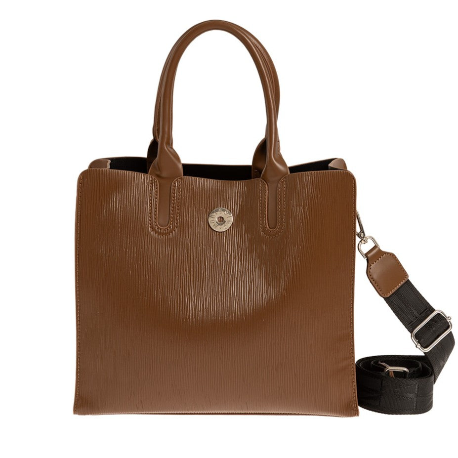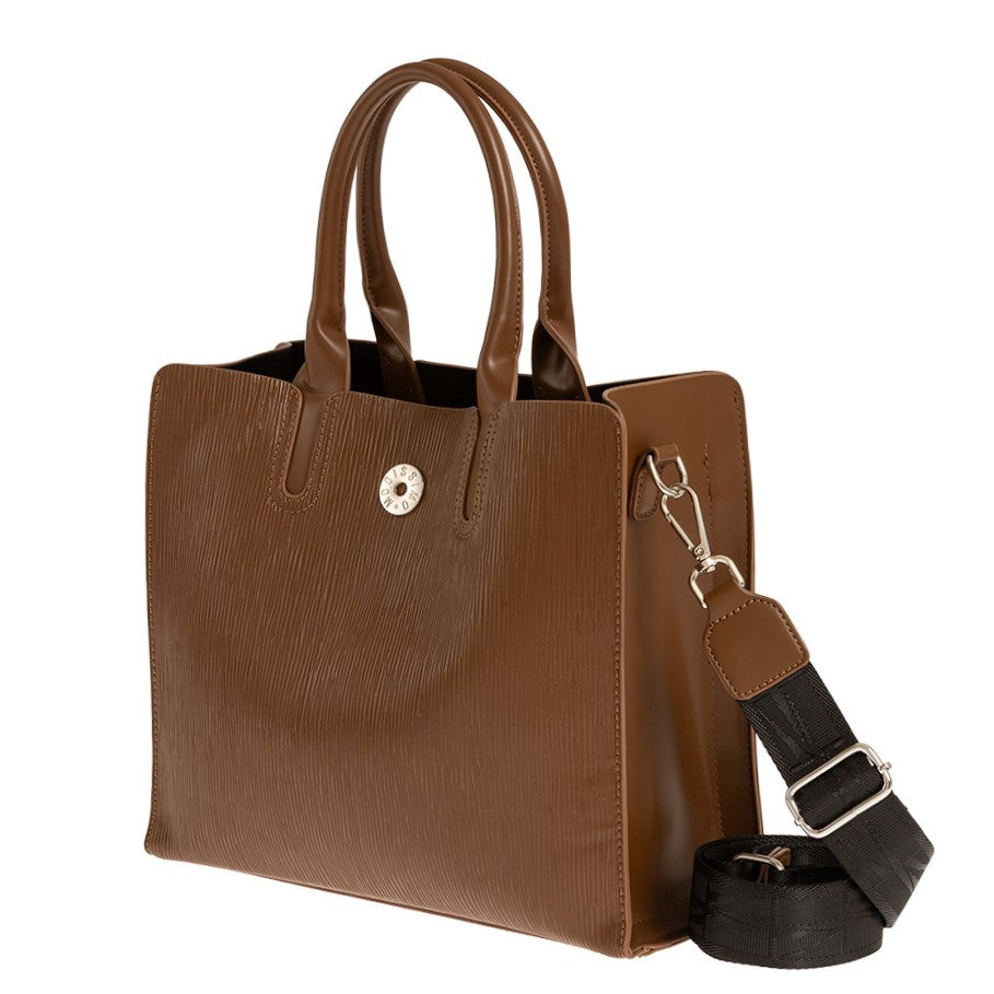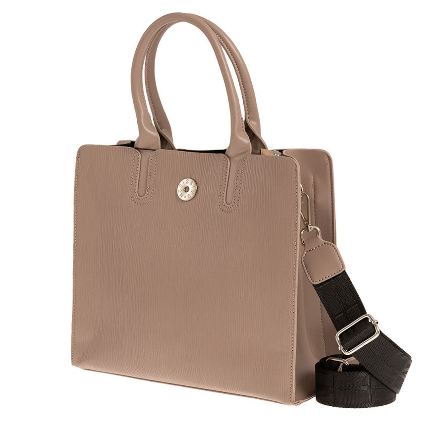 Τσάντα χειρός Modissimo. Διαθέτει 3 θέσεις, 1 κεντρική με φερμουάρ και 2 με μαγνητικό κούμπωμα εκατέρωθεν. Εσωτερικά υπάρχει 1 τσέπη με φερμουάρ και 1 ανοιχτή θήκη. Διαθέτει μακρύ ιμάντα για χιαστί.