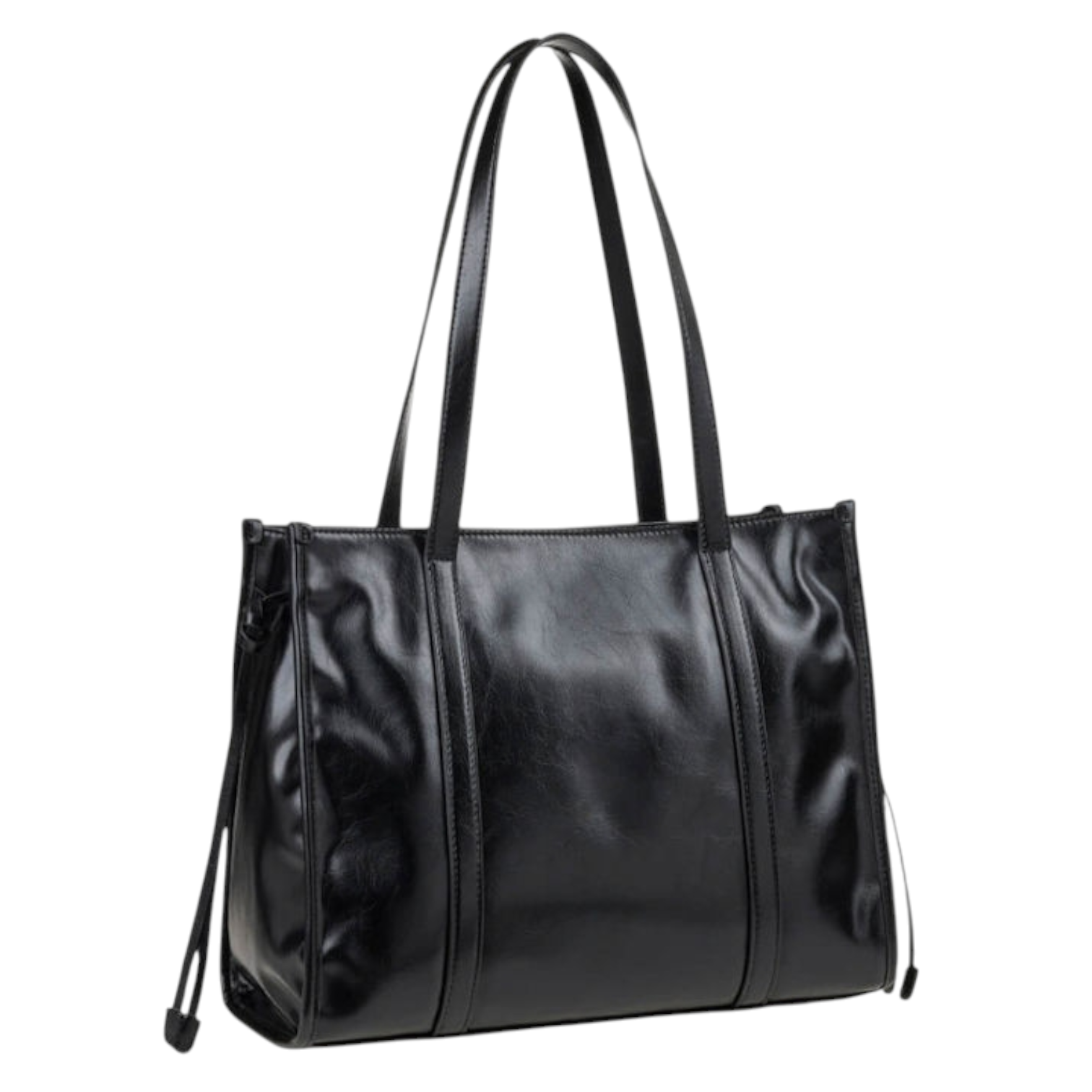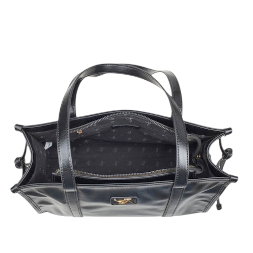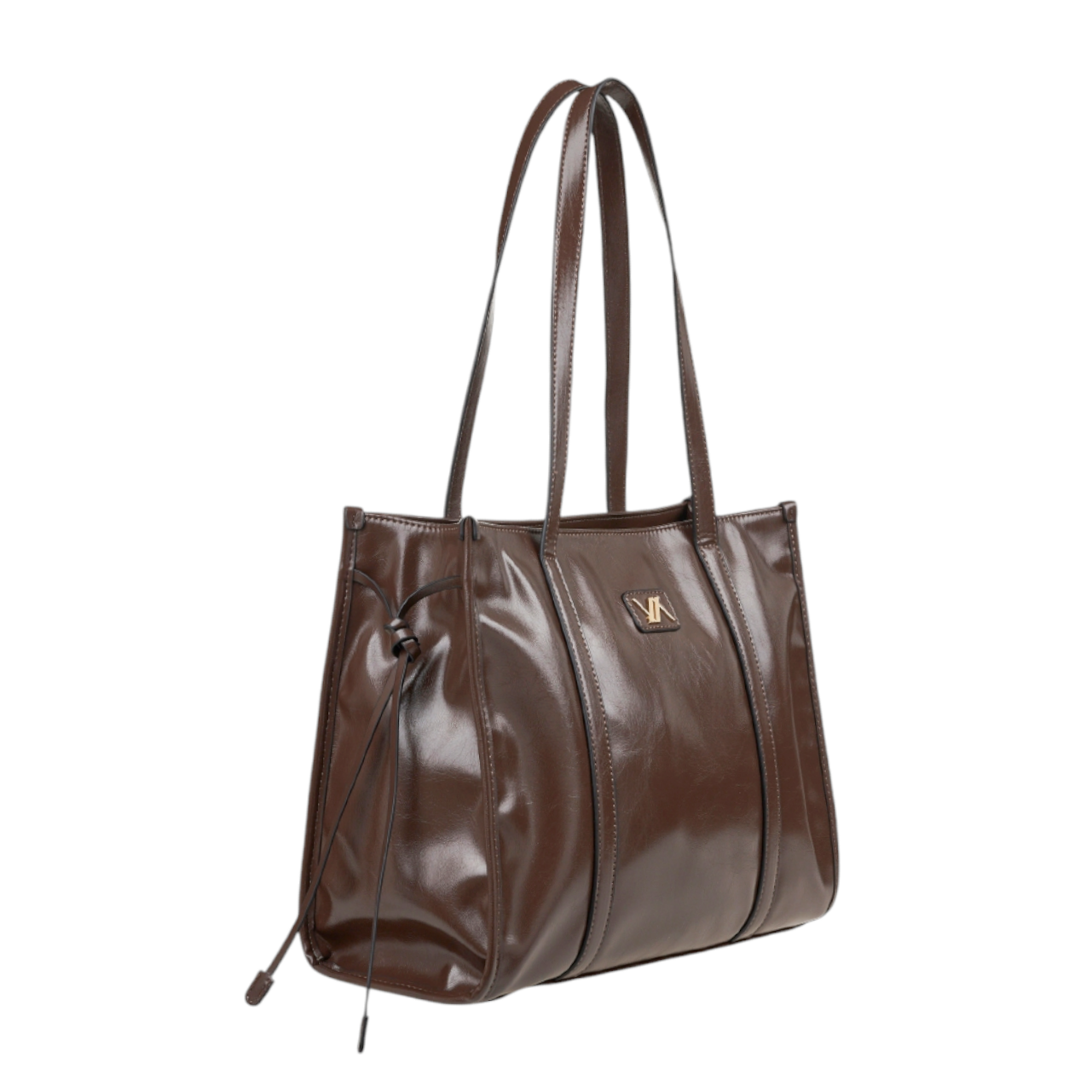 Τσάντα ώμου 16-8111 σε γυαλιστερή δερματίνη. Κλείνει με φερμουάρ. Διαθέτει εσωτερικά 1 τσέπη με φερμουάρ και 2 ανοιχτές θήκες.