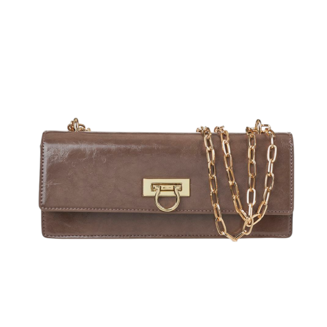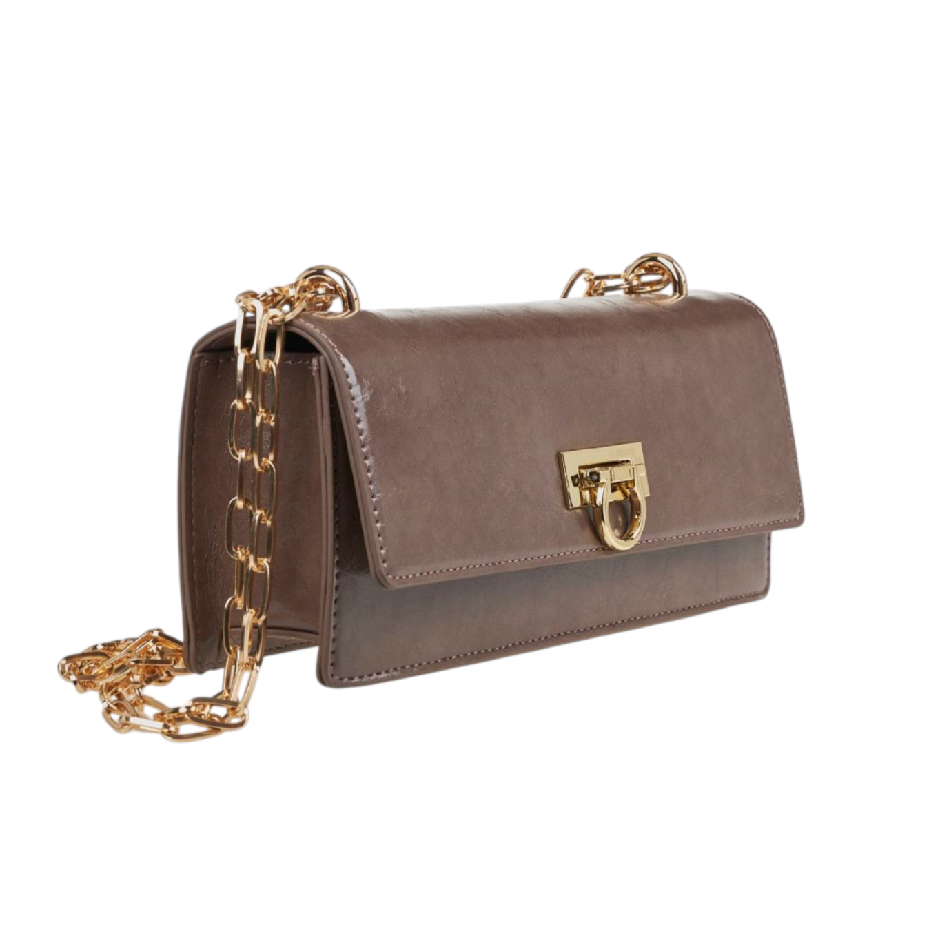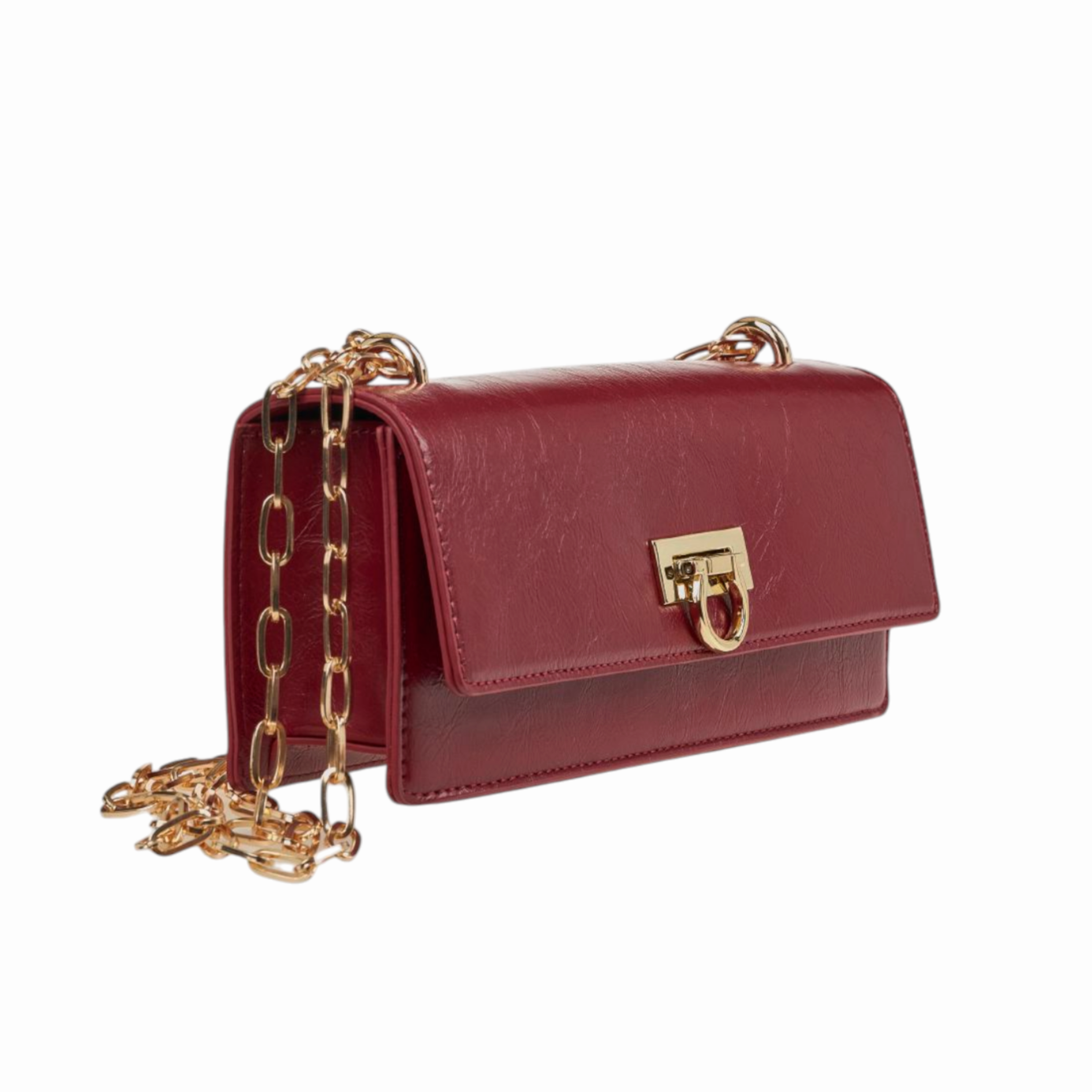 Τσαντάκι ορθογώνιο Verde 01-2037 με χρυσή αλυσίδα. Κλείνει με καπάκι και μεταλλικό κούμπωμα.