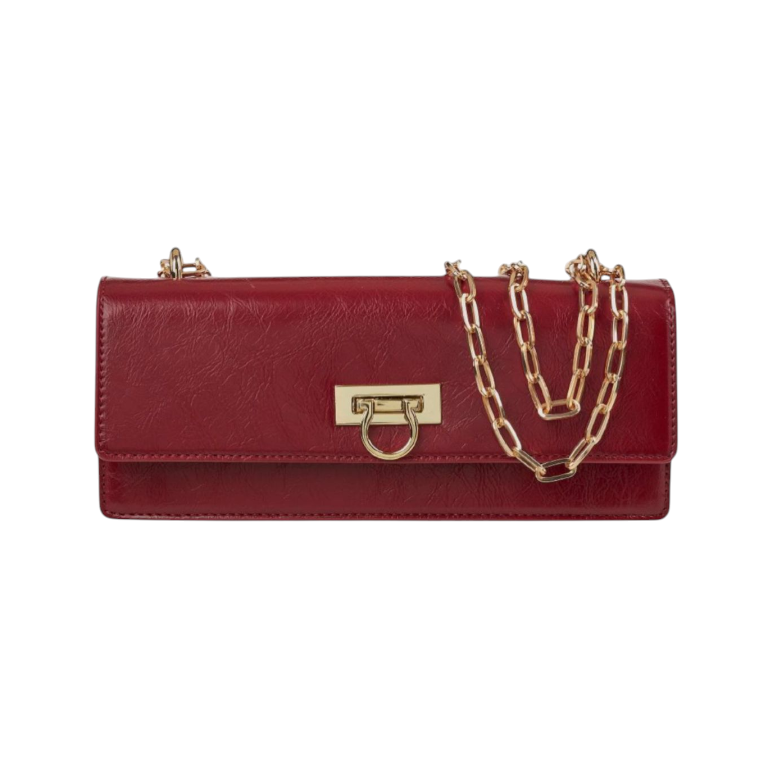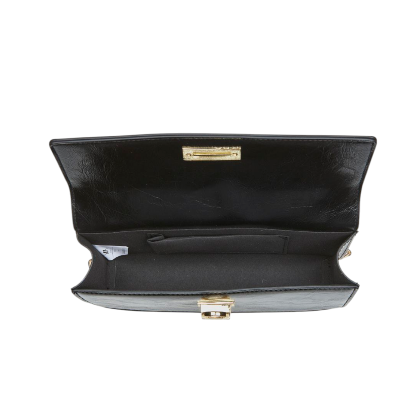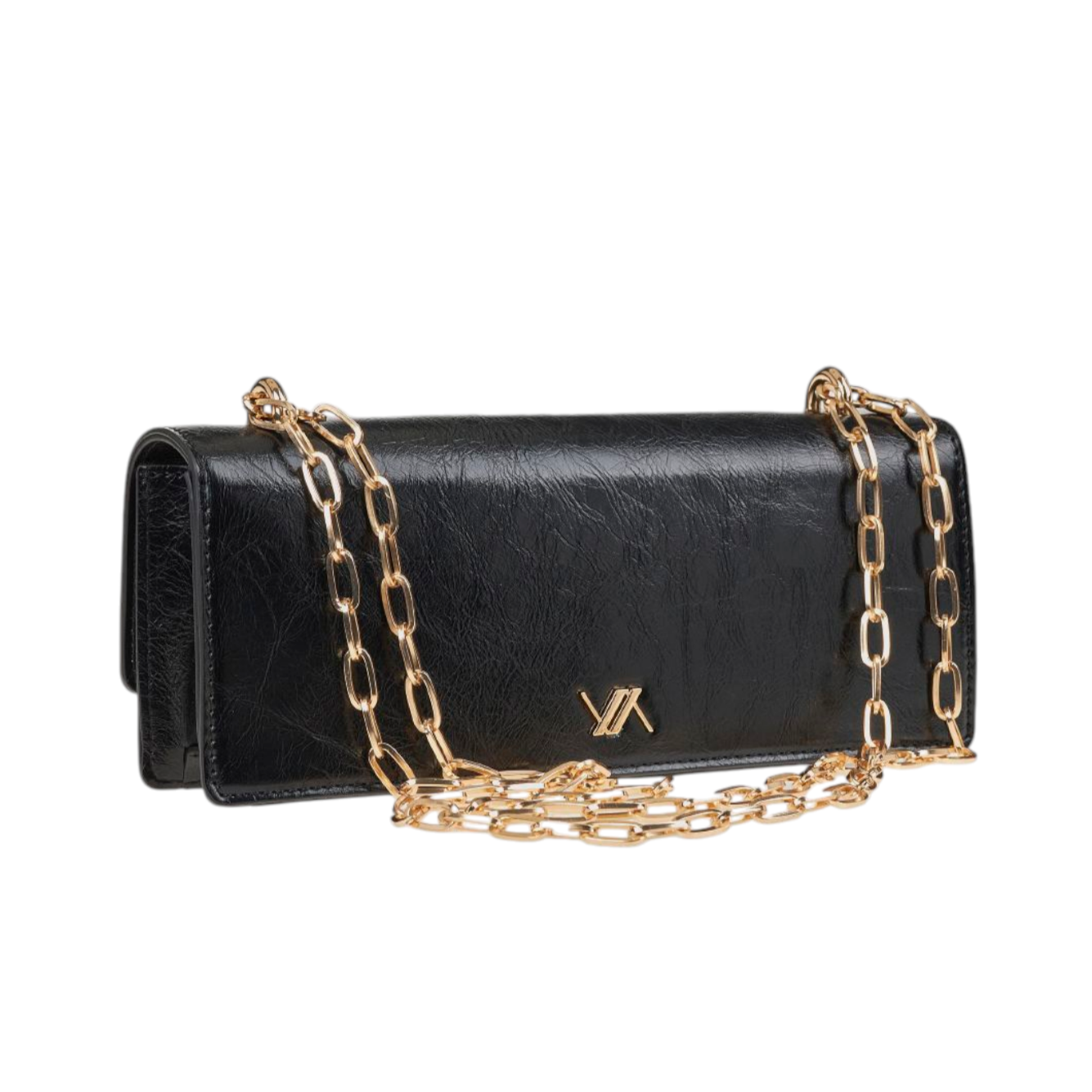 Τσαντάκι ορθογώνιο Verde 01-2037 με χρυσή αλυσίδα. Κλείνει με καπάκι και μεταλλικό κούμπωμα.