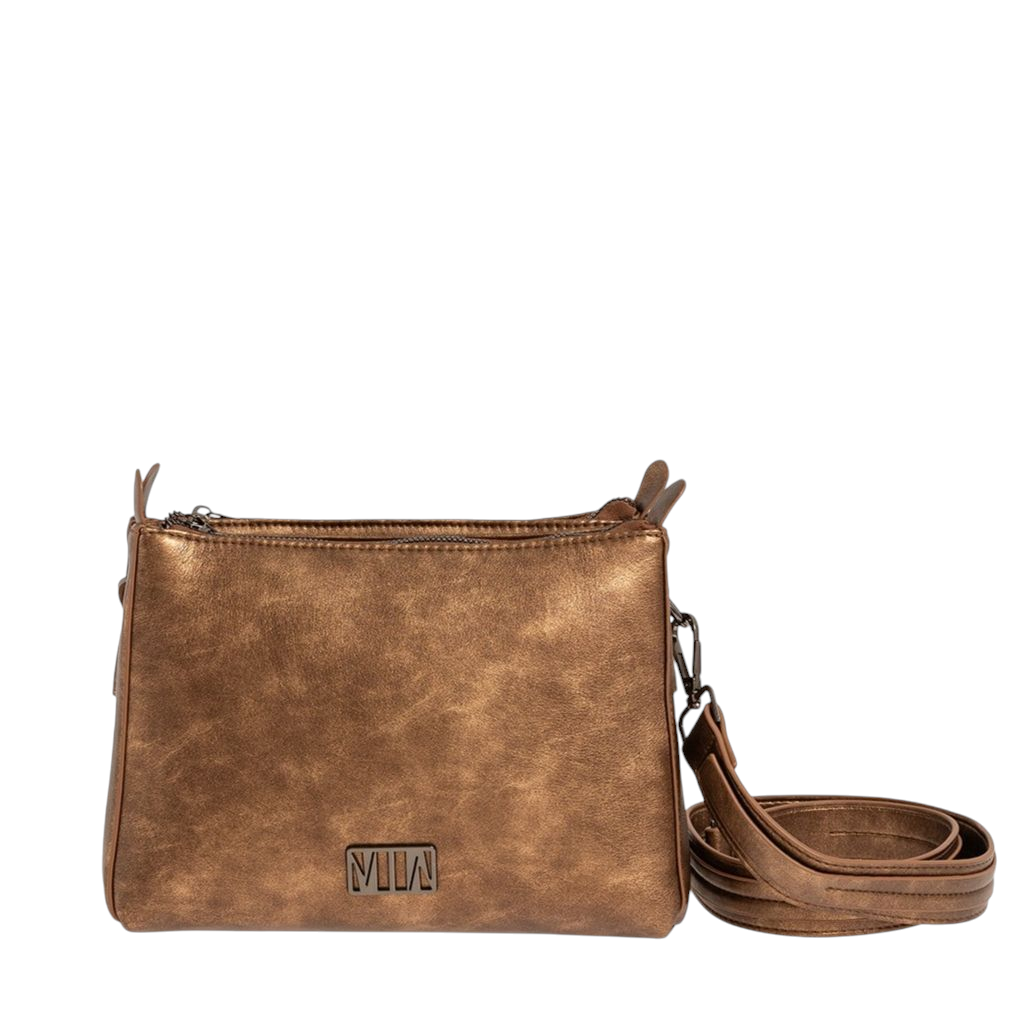 Τσάντα Modissimo. Διαθέτει 2 ξεχωριστές θέσεις με φερμουάρ. Εσωτερικά υπάρχουν 1 τσέπη με φερμουάρ και 1 ανοιχτή θήκη. Εξωτερικά υπάρχει 1 τσέπη με φερμουάρ στο πίσω μέρος.